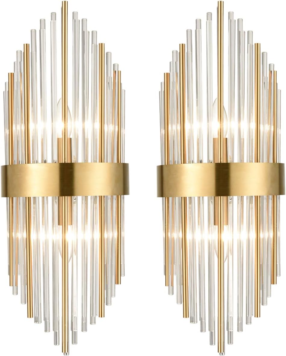 Flаѕh Sаlе Buу 1 gеt 1 Brass Wall Sconces Lighting 2 Pack, Crystal Glass Rods Wall Mount Lamp Set of 2 Wall Lighting Indoor Reviews